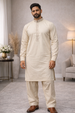 Experience elegance with this stylish salwar kameez, featuring a thread embroidery neckline. Kameez has two side pockets and buttoned sleeve cuffs to add a hint of extra style.